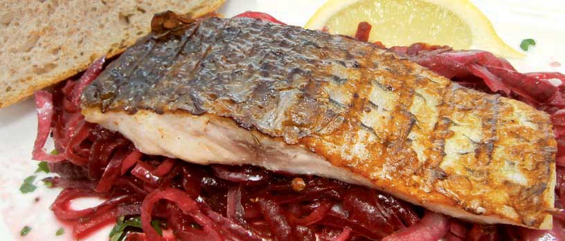 - Grilovaný kapr na všestarském salátku z červené cibule a červené řepy