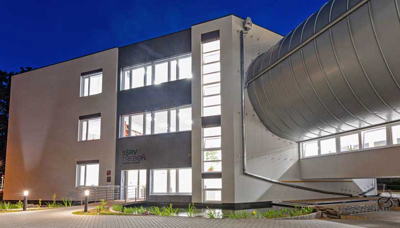 - SŠRV Třeboň - Nová budova školy „Na Ostrově“ s levitující aulou